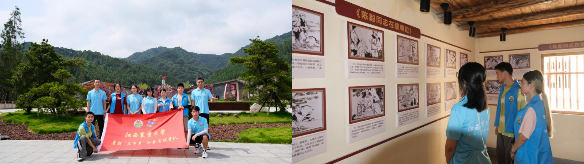 乡村红色旧址,承载烽火记忆。油山镇的崇山峻岭间,镌刻着南方红军三年游击战争的峥嵘史诗,蕴藏着永不褪色的红色基因。循着革命先辈的足迹,实践队走进信丰油山赣南游击词主题园开展实地红色走读活动。驻足纪念碑前,队员们聆听“赣南游击词”创作背景与游击队员的英勇事迹,深刻感受“天将晓,队员醒来早”的艰苦卓绝和“靠人民,支援永不忘”的鱼水情深。沿崎岖山路重走游击路,大家无不被游击战争的艰苦历程和革命先辈的英勇事迹所感动。在陈毅疗伤处旧址,实践队走进 “李桂花智救陈毅”故事发生地,驻足“红色名片”展区前,队员们凝视展板,聆听讲解,“营救陈毅”的惊险、“陈毅疗伤”的温情、“陈毅脱险”的振奋,仿佛把众人带回革命岁月。