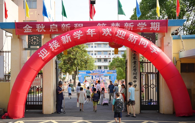 开学前夕,附属中学已周密部署开学工作,确保环境整洁、设施安全、氛围温馨。8月31日迎新日,教师及高年级学生代表早早列队校门,以最灿烂的笑容和最响亮的问候迎接每一位学子,特别是一年级、七年级新同学。明亮的教室、整齐的桌椅、五彩的迎新板报,处处彰显“家”的温暖与细致关怀,帮助新生顺利融入附中大家庭,为快乐成长奠定了坚实基础。
