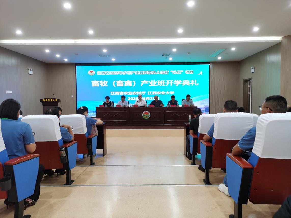 8月29日上午,江西省2025年乡村产业振兴带头人培育“头雁”项目畜牧(畜禽)产业专题班在华体会平台(中国)开班。江西省农业农村产业发展服务中心主任罗锋,华体会平台(中国)副校长刘木华、继续教育学院负责人,全体“头雁”学员等80余人出席开班仪式。