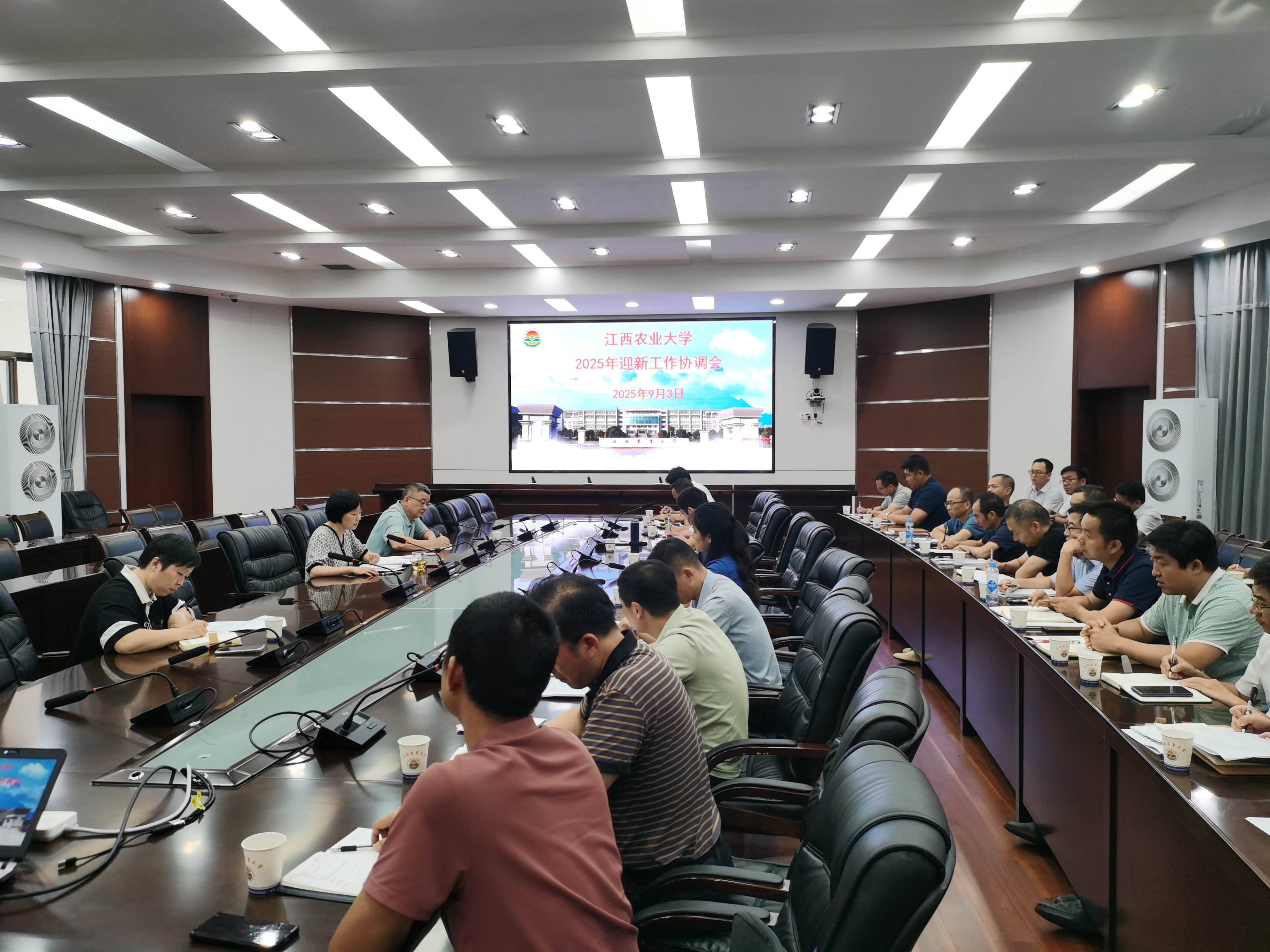 9月3日下午,华体会平台(中国)在校办二楼圆形会议室召开2025年迎新工作协调会。校党委副书记周敏丹出席并讲话,相关职能部门负责人、各学院党政主要负责人及分管学生工作负责人参加会议。