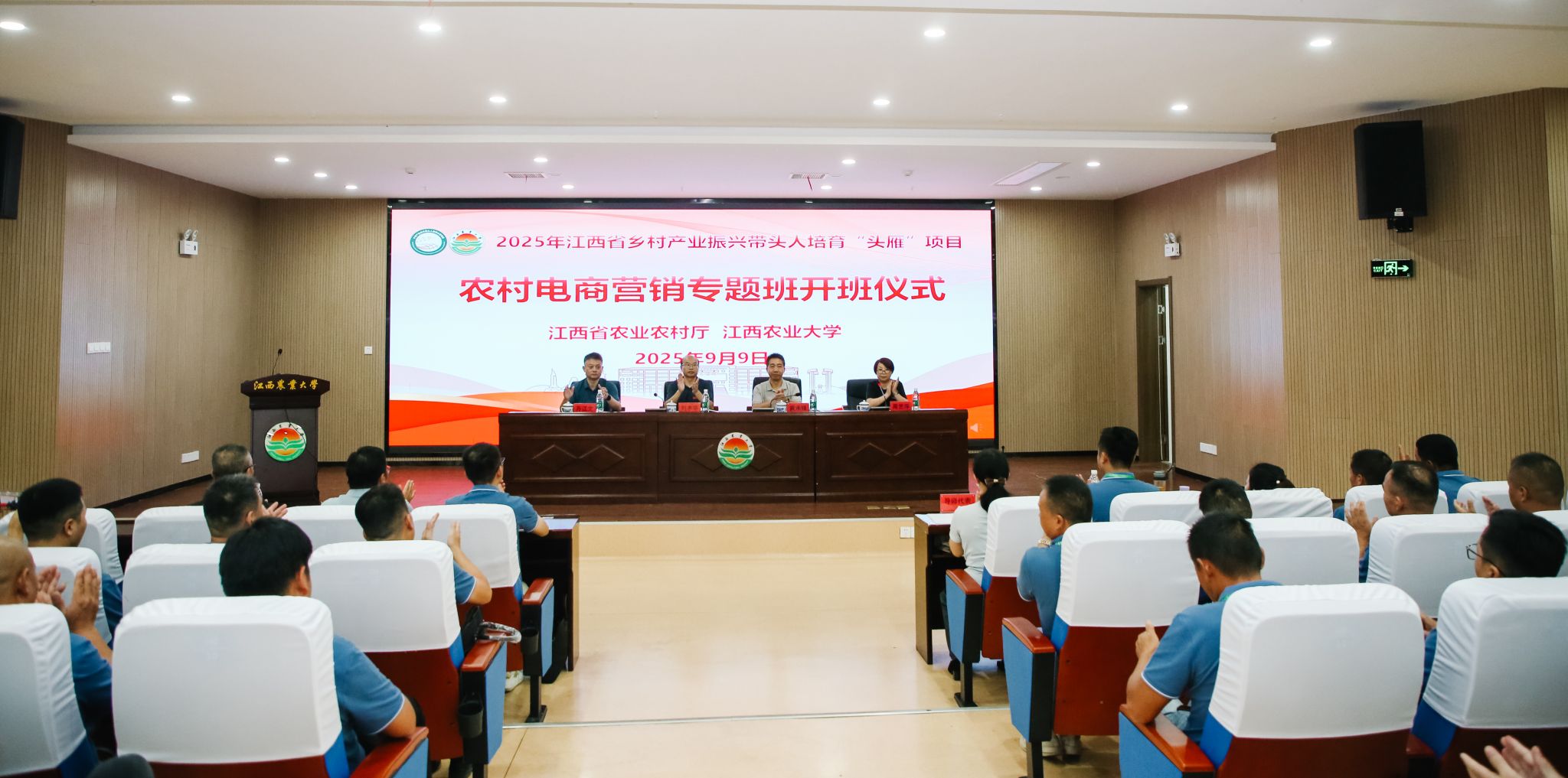 9月9日上午,2025年江西省乡村产业振兴带头人培育“头雁”项目农村电商营销专题班开班仪式在华体会平台(中国)图书馆报告厅一楼举办。副校长刘木华,江西省农业农村厅人事处处长黄承锋,继续教育学院负责人以及“头雁”学员共80余人参加开班仪式。