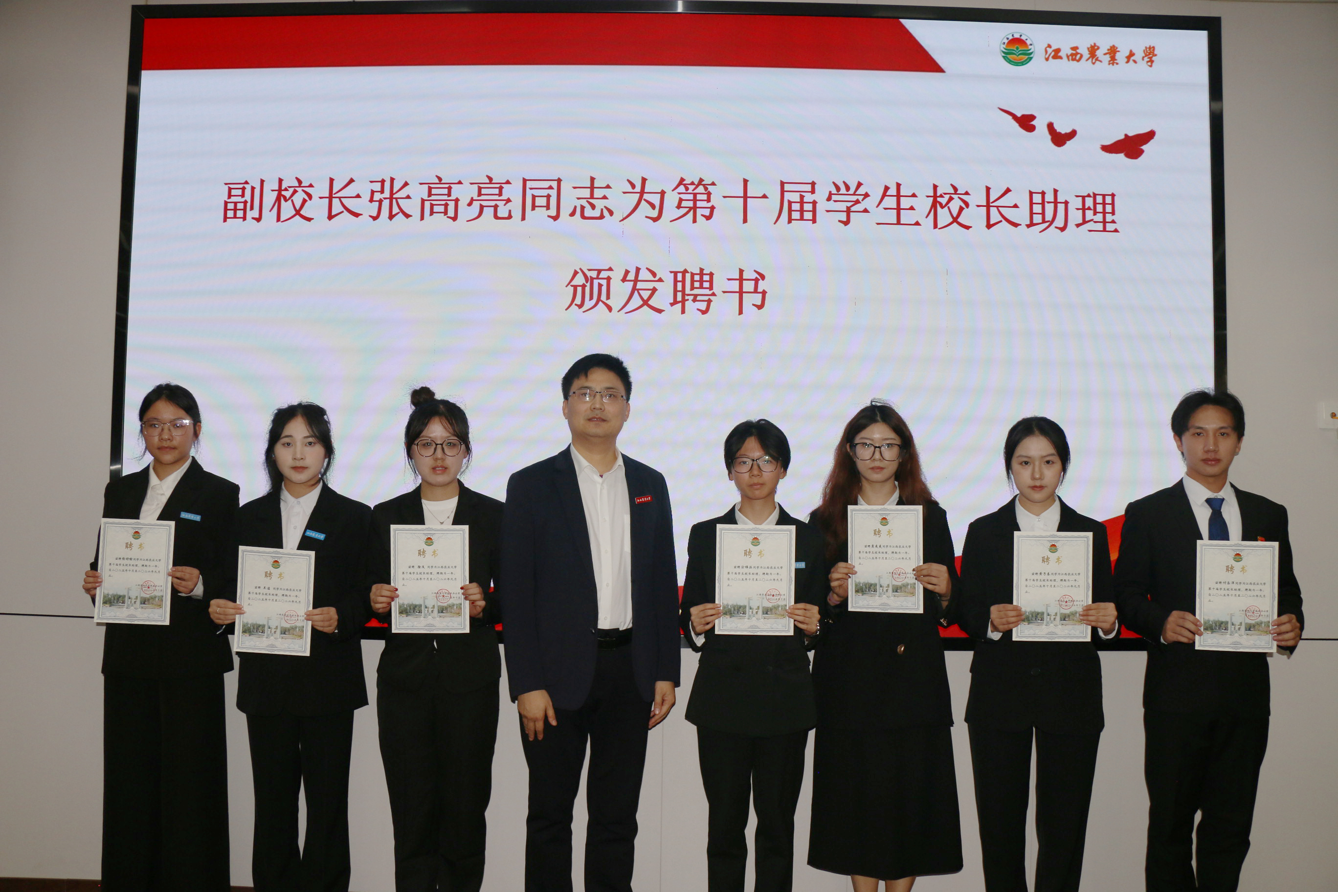 聘任仪式上,党办校办主任李峰宣读《关于聘任华体会平台第十届学生校长助理的通知》,第九届学生校长助理代表欧阳子康同学作工作总结,第十届学生校长助理代表付乐洋同学作表态发言,张高亮为第十届学生校长助理颁发聘书。