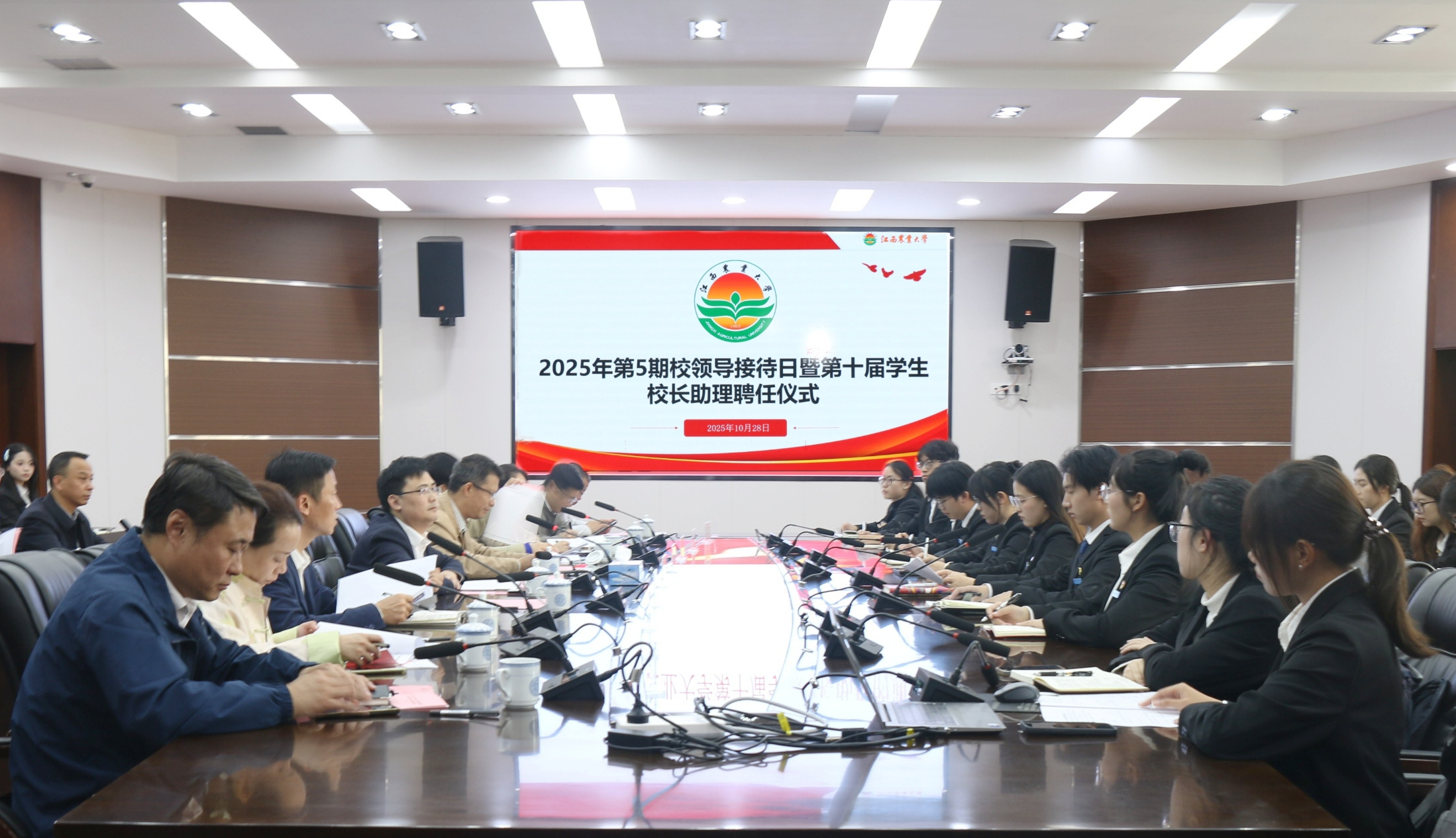 10月28日下午,华体会平台(中国)2025年第5期校领导接待日暨第十届学生校长助理聘任仪式在校办二楼圆形会议厅举行。副校长张高亮出席,党办校办、宣传部、党务政务督查室等单位负责人,校领导接待日师生代表以及学生校长助理参加活动。
