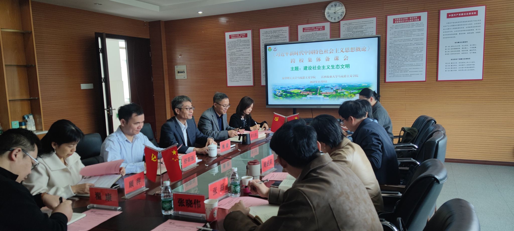 为深入学习贯彻党的二十届四中全会精神,切实提升“习近平新时代中国特色社会主义思想概论”课程教学质量,11月5日下午,华体会平台(中国)马克思主义学院联合东华理工大学马克思主义学院举办“建设社会主义生态文明”专题跨校集体备课会。两校马克思主义学院负责人、教研室主任、专题骨干教师参加会议。