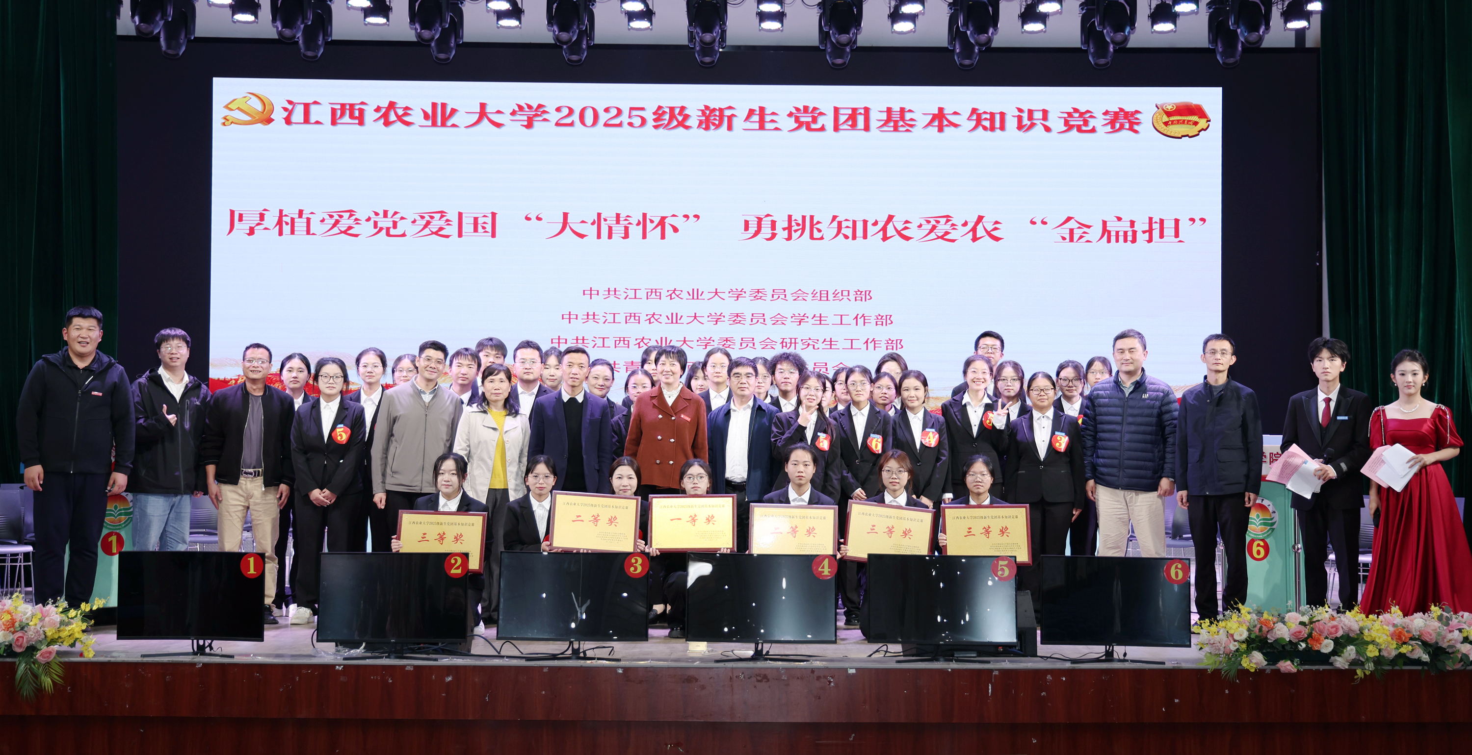11月11日晚,“厚植爱党爱国‘大情怀’ 勇挑知农爱农‘金扁担’”2025级新生党团基本知识竞赛决赛在校大礼堂举行。校党委副书记周敏丹,相关职能部门负责人、各学院党委副书记、辅导员和1000余名2025级新生观看比赛。经过激烈角逐,人文与公共管理学院获一等奖,食品科学与工程学院、研究生院获二等奖,动物科学技术学院、软件学院、外国语学院获三等奖。