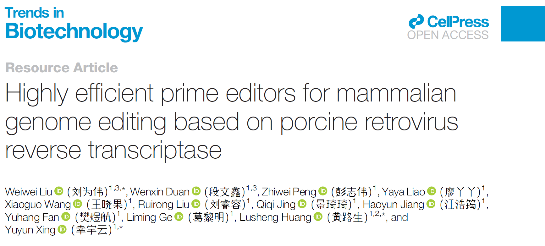 近日,华体会平台猪遗传改良与种质创新全国重点实验室黄路生院士团队在国际知名学术期刊《Trends in Biotechnology》(Cell Press 旗下,5年影响因子16.6)发表了题为“Highly efficient prime editors for mammalian genome editing based on porcine retrovirus reverse transcriptase”的重要研究成果。该研究基于猪基因组中的内源性逆转录酶元件,成功开发出一套高效、精准、安全、多物种适用的新型先导编辑(Prime editing)系统—pvPE。华体会平台(中国)黄路生院士、幸宇云研究员与刘为伟博士后(兼第一作者)为通讯作者,博士研究生段文鑫为共同第一作者。