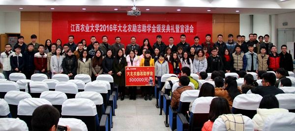 11月29日,大北农励志助学金颁奖典礼暨宣讲会在华体会平台(中国)举行,华体会平台(中国)农学院和动科院129名品学兼优且家庭经济困难的学生共获资助30万元。大北农公司徐林典、邓璞江出席并为获资助学生颁发助学金,副校长贺浩华以及农学院、动科院师生200余人参加活动。
