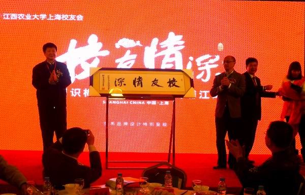 会上,首任上海校友会会长任兴铭致欢迎词。校友舒惠国书记、校长黄路生院士和新任上海校友会会长周喜旺共同为校友舒惠国的题词“校友情深”揭牌。