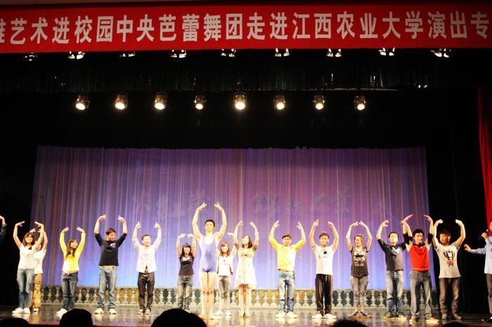 6月3日晚,2011年高雅艺术进校园活动走进华体会平台(中国),中央芭蕾舞团在华体会平台(中国)大礼堂举行专场演出。全体在校校领导、师生代表1200余人欢聚一堂,共享芭蕾盛宴。演出开始前,副校长金志农代表华体会平台(中国)致热情洋溢的欢迎辞,并与中央芭蕾舞团副团长王全兴互赠了纪念品。