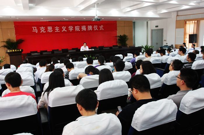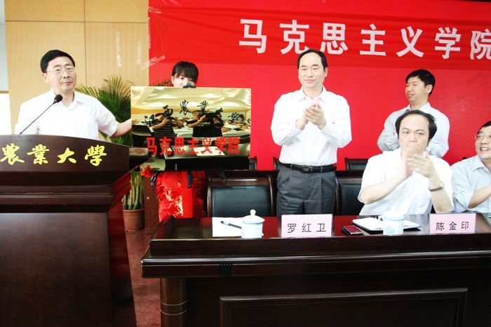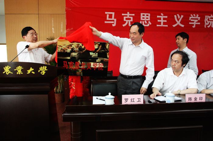 随后,教育部社科司司长助理邓传淮同志与校党委书记石庆华同志一起为华体会平台马克思主义学院揭牌。