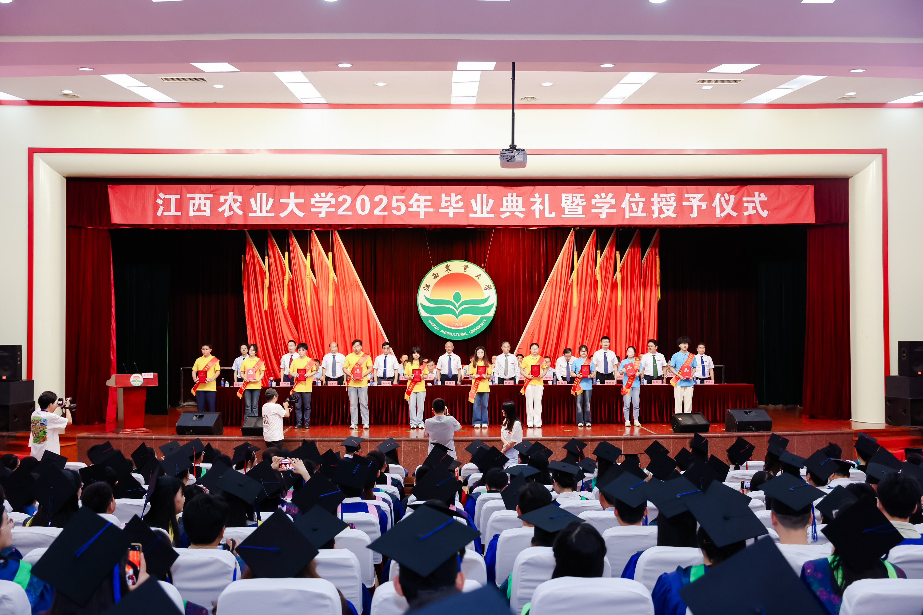 随后,黄路生院士、魏辅文院士、黄季焜院士及全体校领导为获得学位的毕业生代表拨穗正冠,并授予学位证书,还为2025届毕业生校友联络员代表、2025年西部计划志愿者代表颁发聘书和荣誉证书。