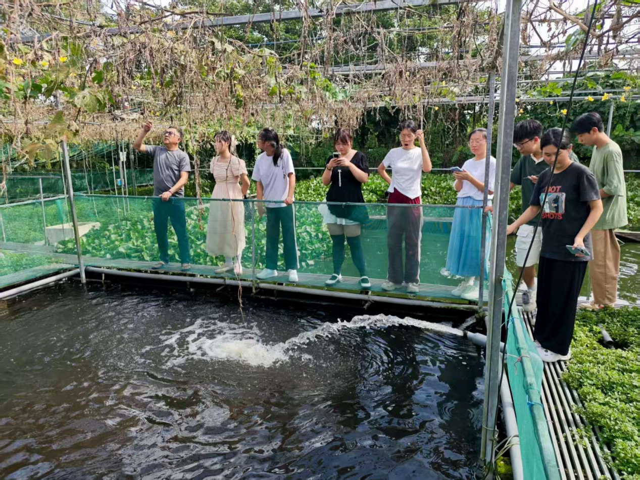 在东南亚最大鳄鱼农场,学生们实地考察了从鳄鱼孵化养殖到皮革加工,再到主题观光,“养殖—加工—旅游”一二三产深度融合的产业链模式。路可视鱼菜共生农场“自动化调控+生态循环+立体生产”模式,在有限空间内实现高效产出和近零排放,给同学们留下了深刻印象。
