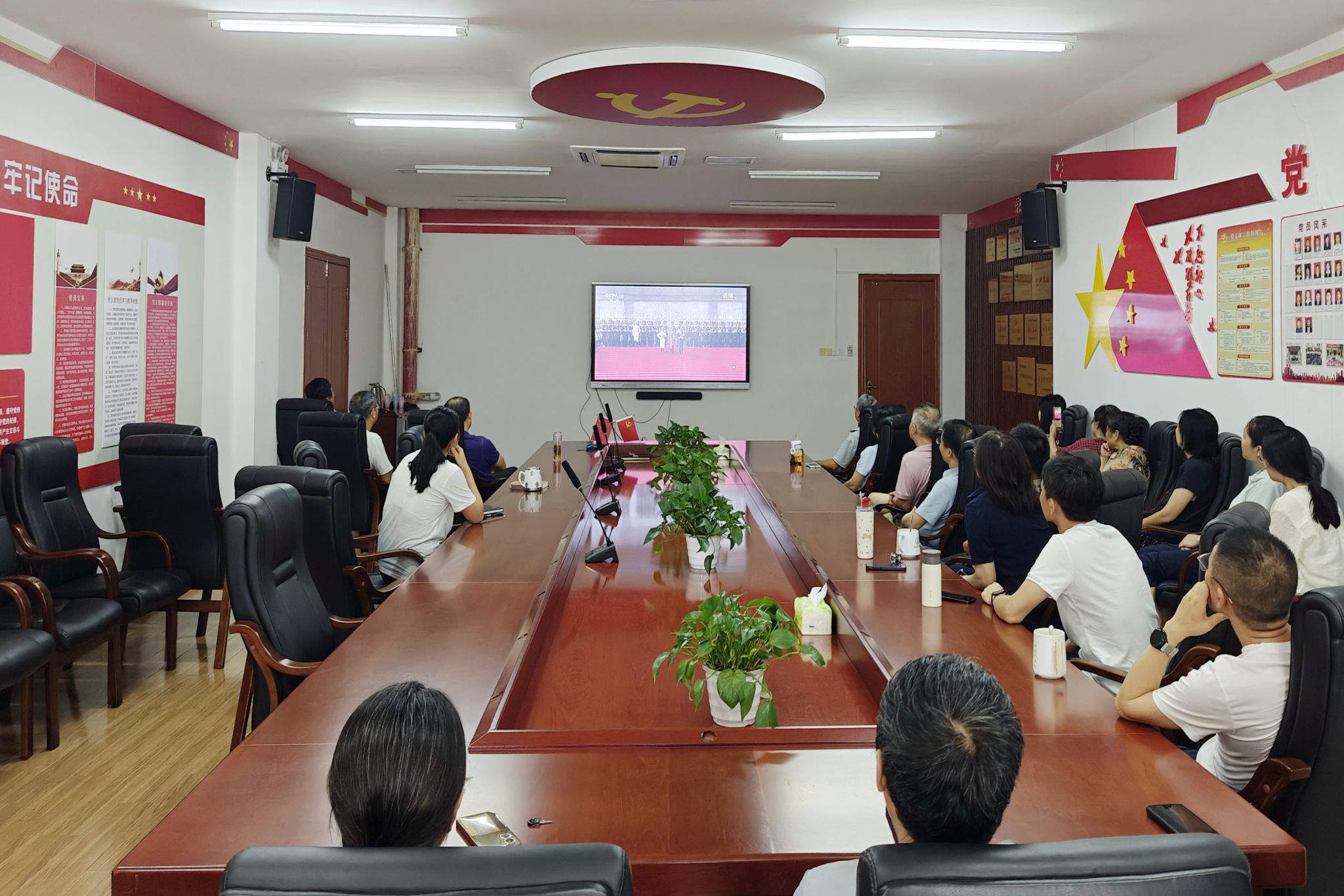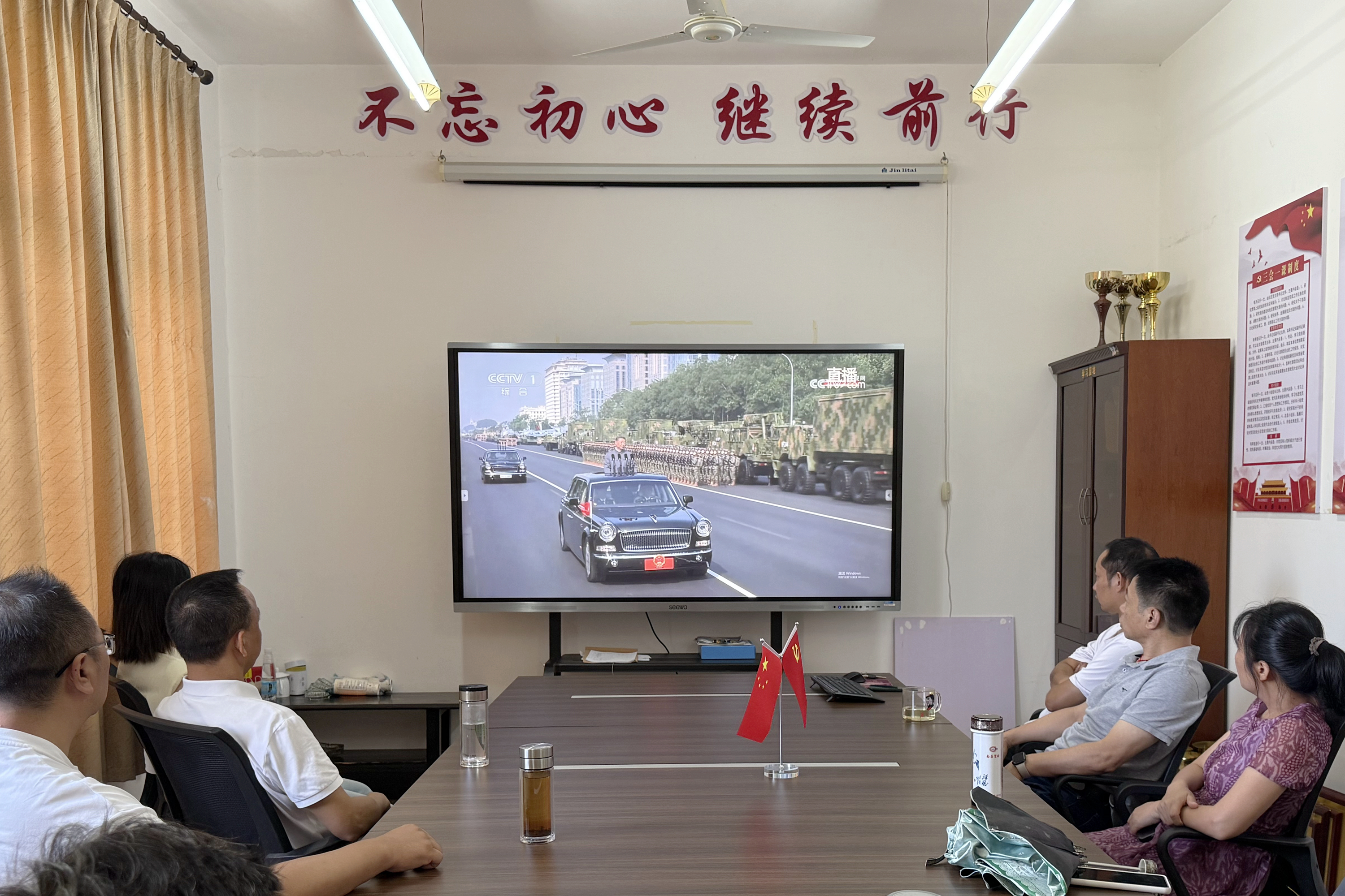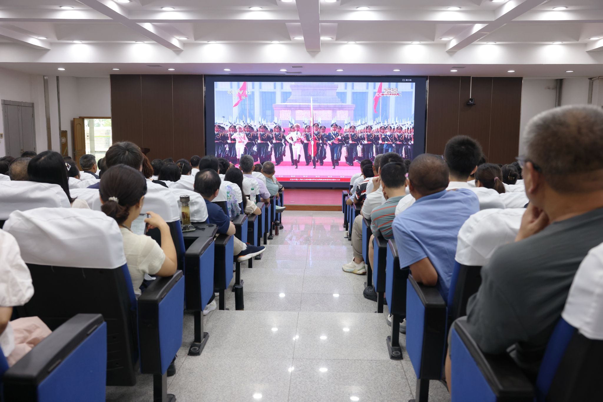 9月3日上午,纪念中国人民抗日战争暨世界反法西斯战争胜利80周年大会在北京天安门广场隆重举行,中共中央总书记、国家主席、中央军委主席习近平发表重要讲话并检阅部队。华体会平台(中国)各级党组织第一时间通过电视、网络等多种形式,组织党员干部、师生群众收听收看大会盛况。全体在校校领导、机关党员干部在行政楼一楼报告厅集中收看,共同缅怀革命先烈,弘扬伟大抗战精神,汲取奋进力量。