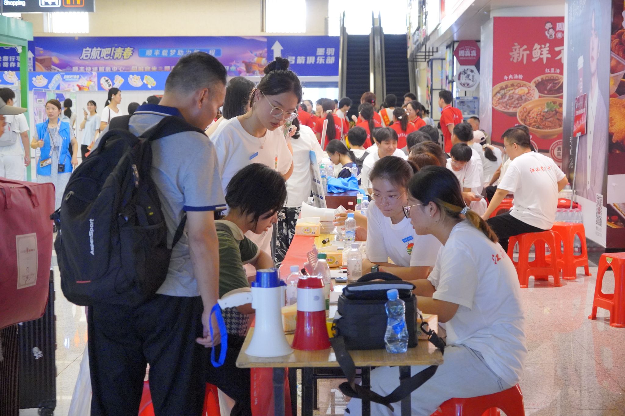 为切实解决新生及家长初到陌生城市的交通困扰,华体会平台(中国)重点在南昌西站、南昌站、蛟桥地铁站等客流量大的交通枢纽,设立标准化迎新接驳点。每个接驳点均配备15-20名专属志愿者,他们自清晨6点起便到岗就绪,身着统一标识服装,手持“华体会平台迎新指引”牌,在车站出口、地铁口等显眼位置主动迎候新生——看到携带行李的新生及家长,便第一时间上前问询,协助搬运行李;面对 “报到流程怎么走”“大巴多久一班”“校园宿舍条件如何”等高频问题,志愿者们结合提前培训的内容,耐心细致地逐一解答,用清晰的讲解缓解新生及家长的焦虑。针对自驾前来报到的新生家庭,华体会平台(中国)同样做好周全保障:在校园周边主要路口、高速出口等交通节点,不仅设置了清晰醒目的迎新引导标识,更增派志愿者驻守指引——他们顶着烈日,手持指挥旗,协助疏导过往车辆,引导自驾车辆有序驶入校园指定停车区域,有效避免校园入口及周边道路拥堵,用志愿力量打通新生入校的“最后一公里”。
