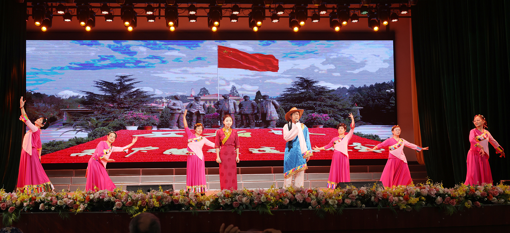会后,校领导和老寿星们合影留念、共同观看文艺汇演。舞蹈《江山》拉开了文艺演出的序幕,歌曲合唱、快步秀、木兰扇、柔力球、腰鼓舞、太极拳等精彩纷呈的节目,生动地展示了老同志积极向上的风采,不断赢得观众的阵阵掌声。