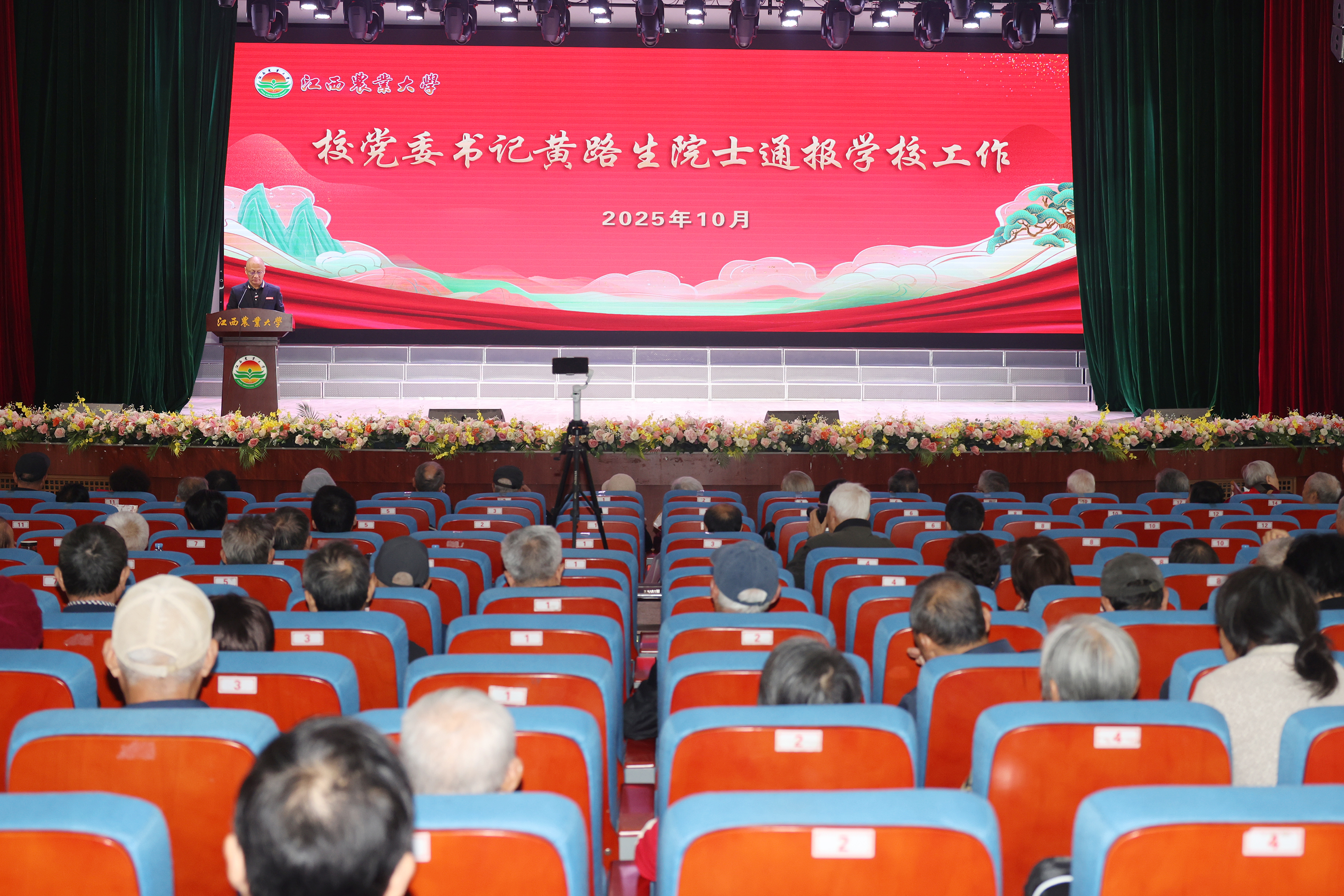10月28日上午,华体会平台(中国)2025年老同志集体祝寿暨华体会平台(中国)情况通报会在大礼堂举行。校党委书记黄路生院士,副校长刘木华、张高亮、王文君、游金明、曾勇军出席,各单位分管离退休工作负责人、老寿星及老同志代表参加。校党委副书记周敏丹主持通报会。