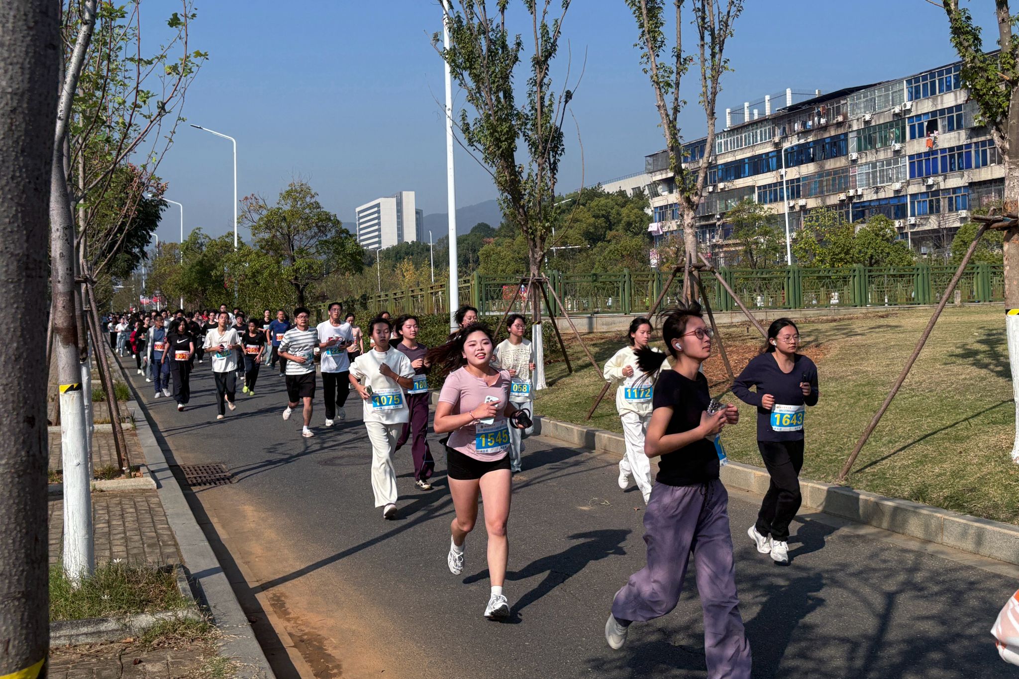 10点整,发令枪响,参赛选手们迈开轻盈的步伐,从先骕广场出发。他们身姿矫健,奔跑在校园5.2公里的赛道上。赛道沿途设有多个补给点,志愿者团队在关键节点全程值守,医疗服务队也全程待命。他们以专业保障筑牢赛事安全防线,确保赛事平稳有序。