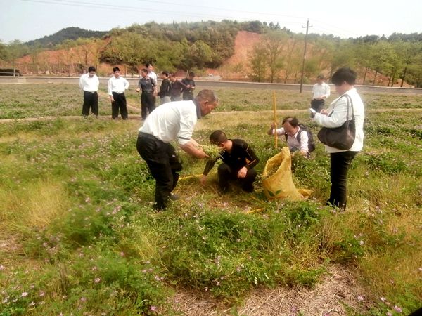 华体会平台(中国)承担的国家科技支撑计划项目开展紫云英测产工作